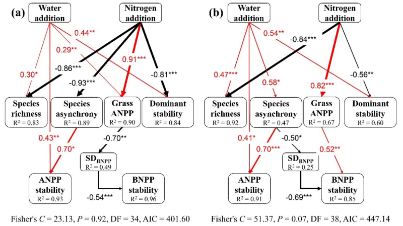 本研究系统阐明了长期割草利用和不割草下增水和施氮对典型草原植物群落地上地下生产力稳定性维持的驱动机制,研究结果为在人类活动干扰和全球变化加剧背景下内蒙古典型草原的适应性管理提供了重要理论基础。