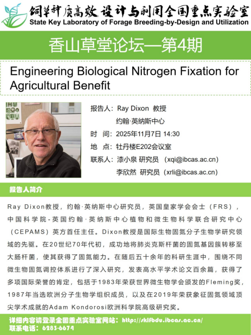 2025年11月7日“香山草堂论坛”第4期:Engineering Biological Nitrogen Fixation for Agricultural Benefit