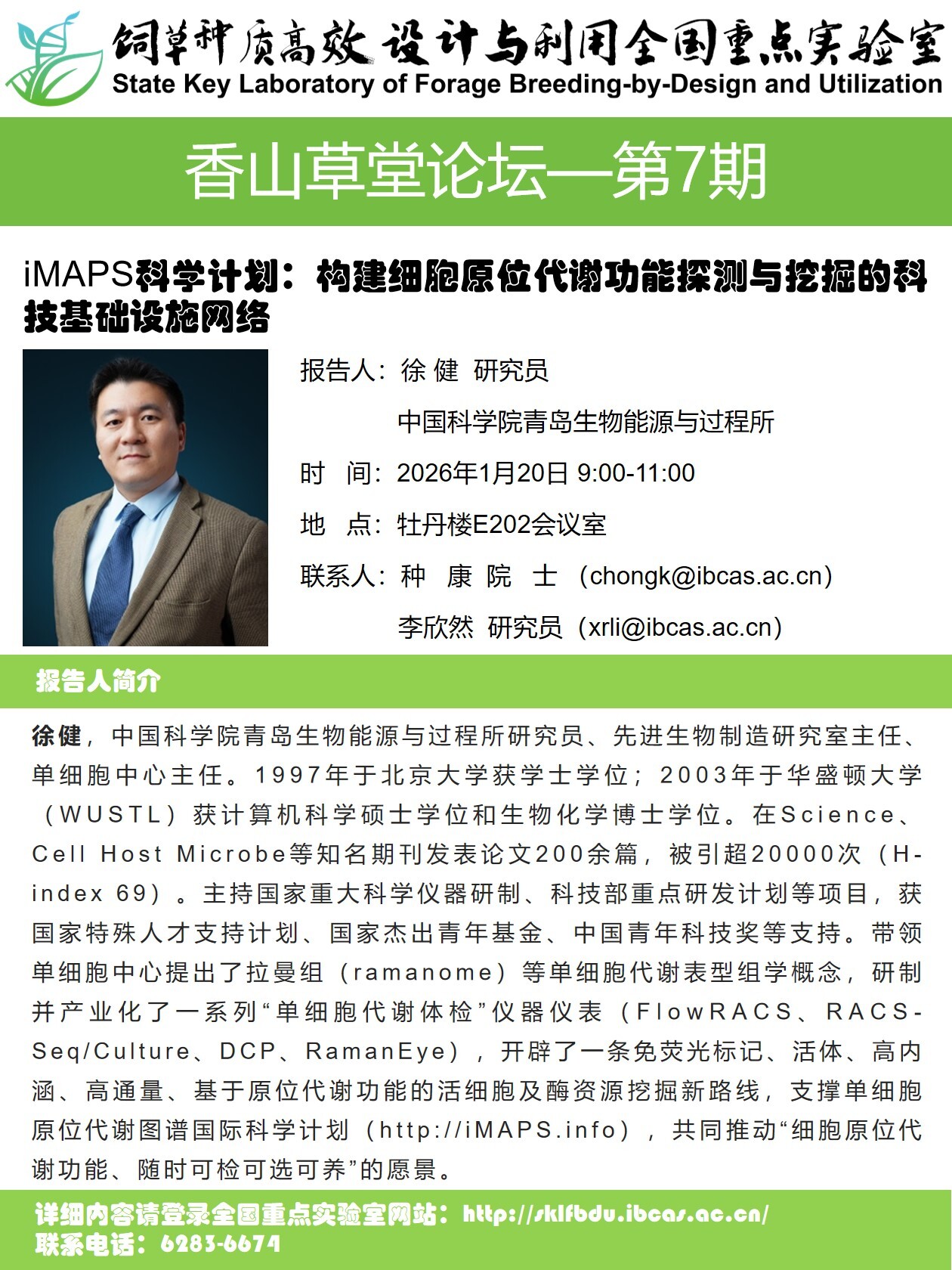 2026年1月20日“香山草堂论坛”第7期:iMAPS科学计划:构建细胞原位代谢功能探测与挖掘的科技基础设施网络