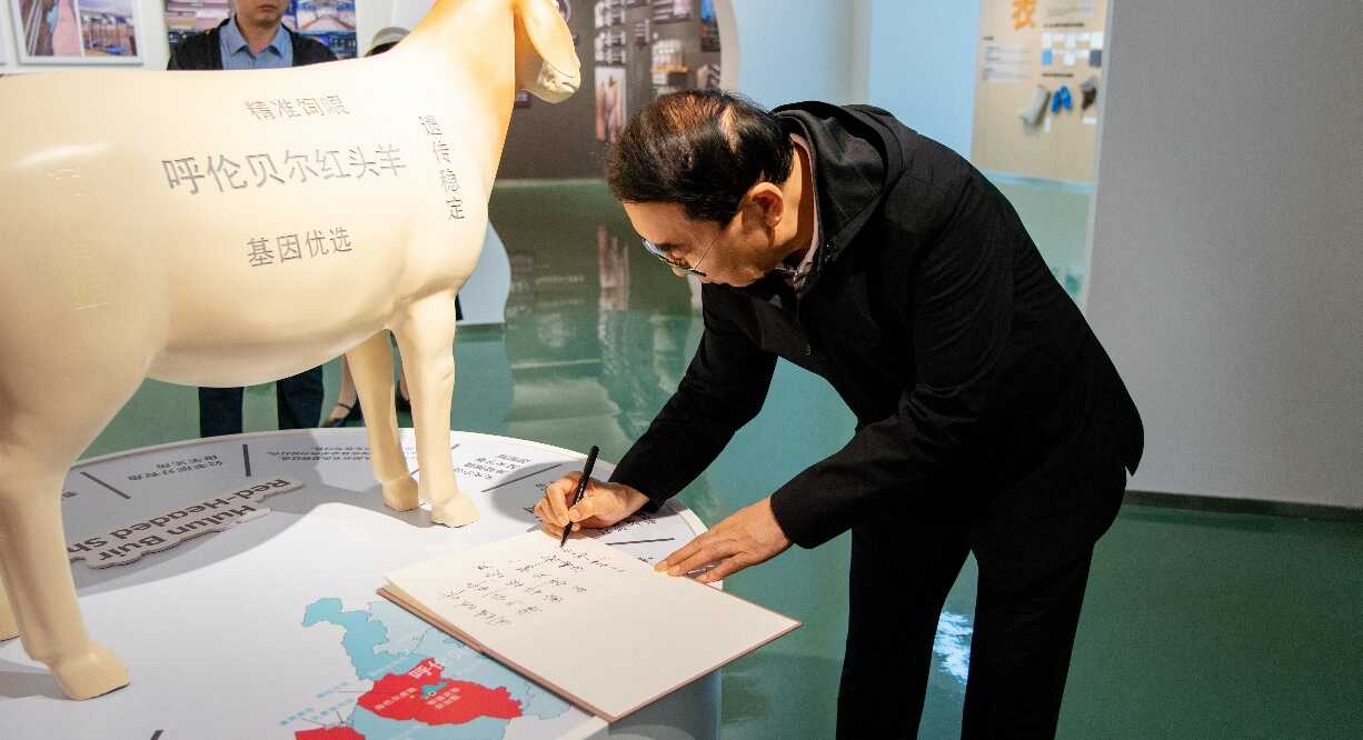 白春礼院士为呼伦贝尔羊博物馆题字“团结协作,勇于创新,做科技攻关的领头羊”