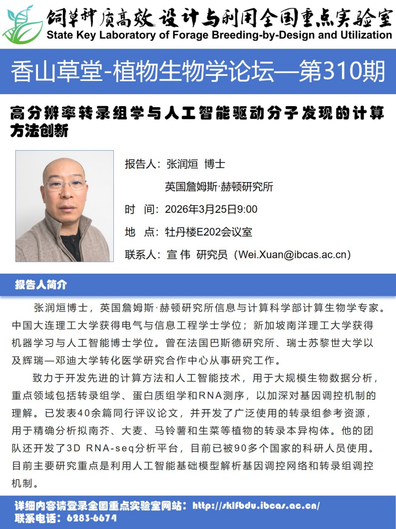2026年3月25日“香山草堂-植物生物学论坛”—310:高分辨率转录组学与人工智能驱动分子发现的计算方法创新