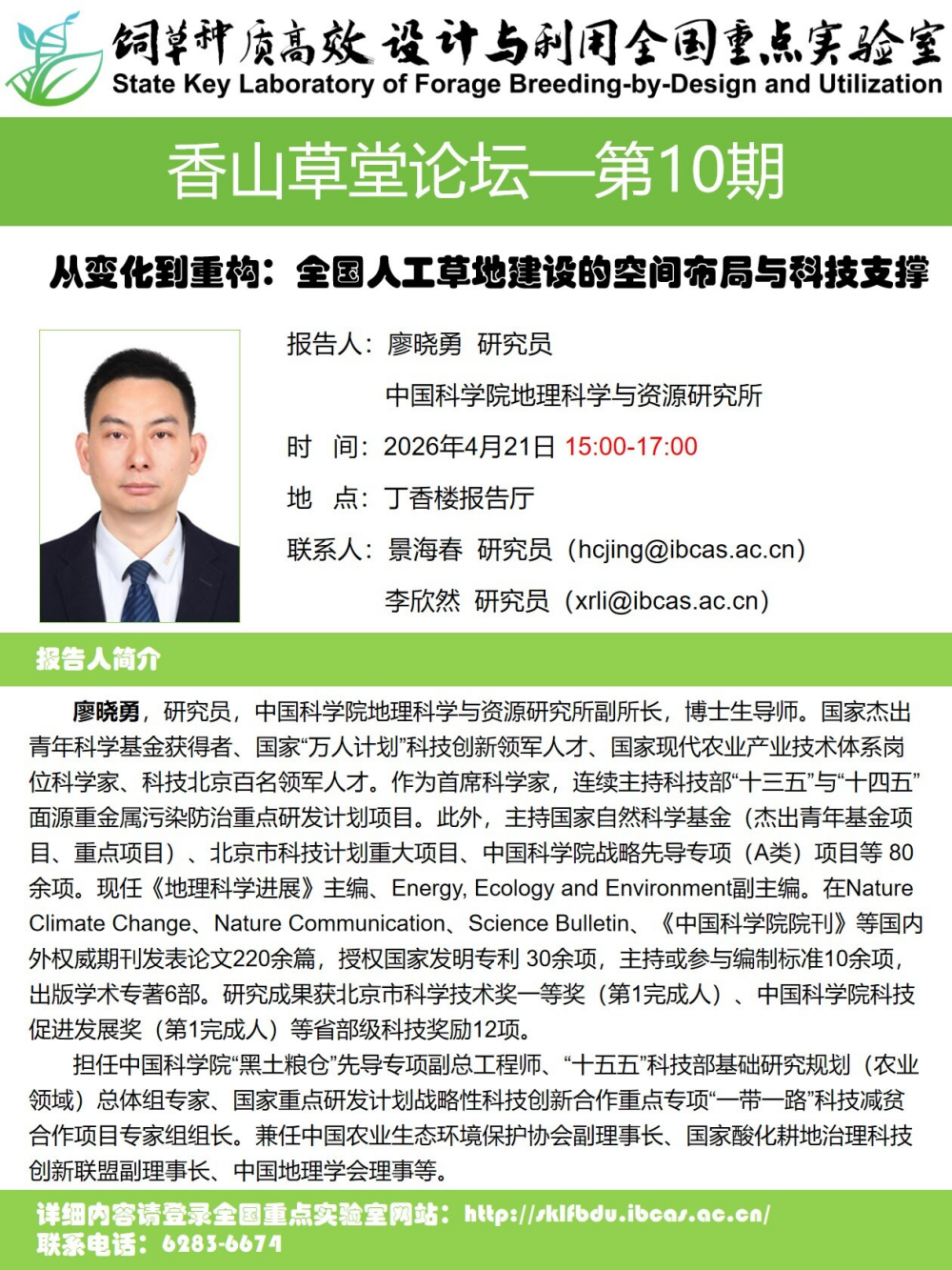 2026年4月21日“香山草堂论坛”第10期:从变化到重构:全国人工草地建设的空间布局与科技支撑