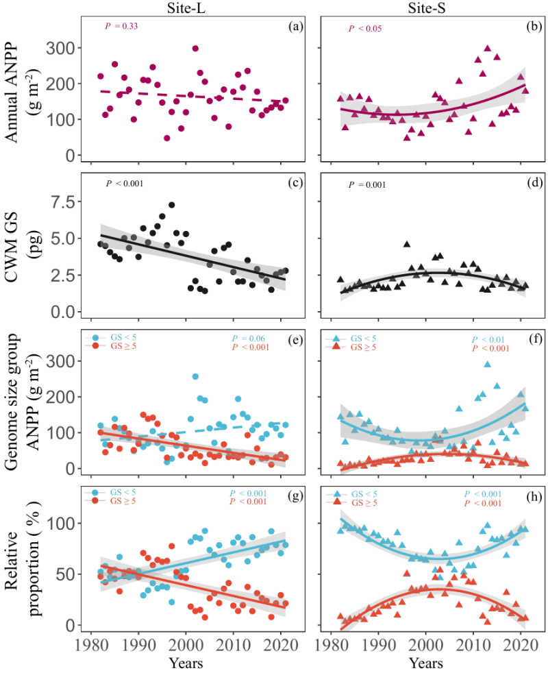魏存争副研究员等揭示气候变暖背景下基因组大小调控草地群落的新机制